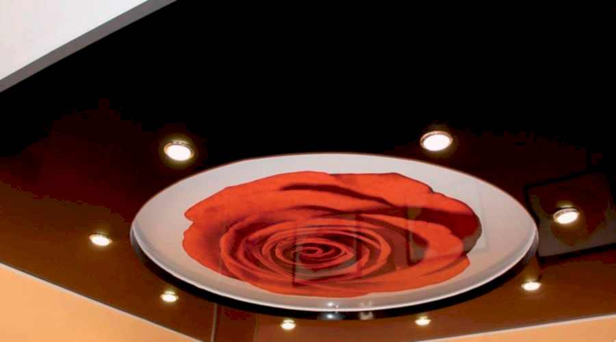 Сегодня растут продажи потолков с эффектом звездного неба (фото образцов есть в нашем каталоге). В этих целях целесообразно приобретать глянцевую, сатиновую или металлизированную пленку (с блестками). Вставленные светодиоды-«звезды» создают уютную, Пин Ап атмосферу. Возможна установка различных вставок для разделения границ цветных зон.