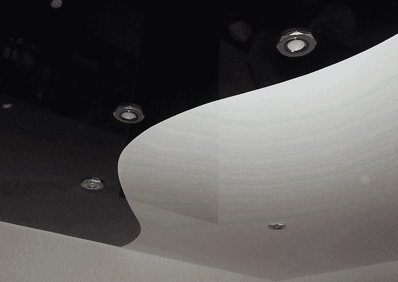 Потолки из полимерных Пин Ап первыми начали делать во Франции, поэтому их другое название - «французский». Само по себе использование темных оттенков и белого- смелый шаг в дизайне интерьера, но придает помещению особый шарм.