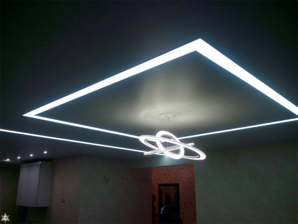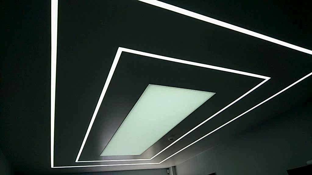 - Чтобы усилить освещение, лампы размещаются в светлой части покрытия.