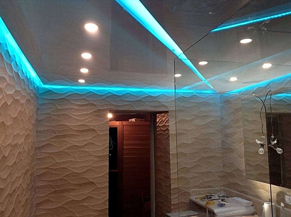 - Универсальность. Лента крепится по границам комнаты, располагается в Пин Ап При монтаже двухуровневого и многоуровневого потолка диоды устанавливаются по контуру уровней.