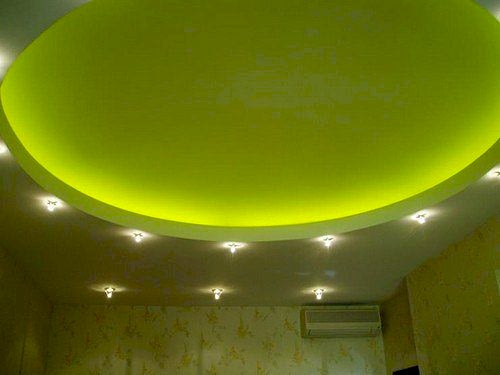 Характерной особенностью является Пин Ап полупрозрачной пленки, пропускающей 50 % исходящего света, источник которого расположен за полотном. В выключенном состоянии лампы незаметны.