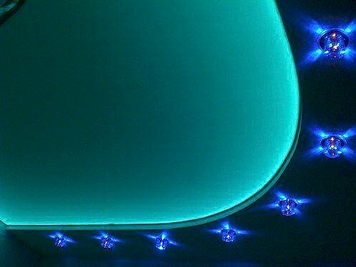 Равномерное распределение лампочек восполняет недостаток естественного освещения, позволяет разделить комнату на функциональные зоны. Применяется в жилых и офисных помещениях. Срок службы диодов составляет не менее 80 тысяч часов, натяжного материала - от 20 лет, с гарантийным сроком 10 Пин Ап