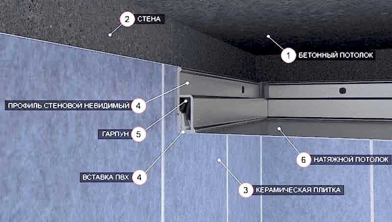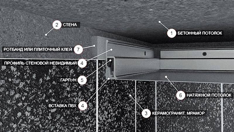 Монтаж натяжных потолков в ванной имеет свои особенности. Мы Пин Ап специальный профиль из анодированного алюминия, который не подвержен коррозии. Все крепежные элементы изготовлены из нержавеющей стали, что гарантирует долговечность конструкции.