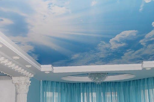 При изготовлении покрытий такого вида используют фотопечать. Обычное белое полотно не даст такого эффекта как насыщенно яркие цвета и гармоничный рисунок. Такие композиции создадут в вашем доме гармонию и красоту. Обратите внимание, что конструкция экологически чистый вариант, а также умное вложение средств. Небесное полотно изготавливают по заказу клиента из исходного Пин Ап