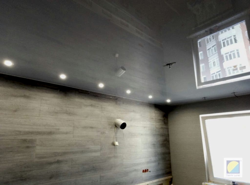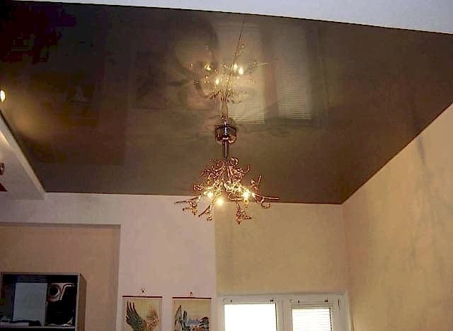 - Глянец. Глянцевая перламутровая пленка обладает отзеркаливающим эффектом. Визуально делает комнату больше и объемнее, поэтому конструкции предпочтительно монтировать в невысоких помещениях. Глянцевый Пин Ап потолок сочетается с любым освещением. Ухаживать за ними несложно, но при неаккуратном мытье могут остаться разводы.