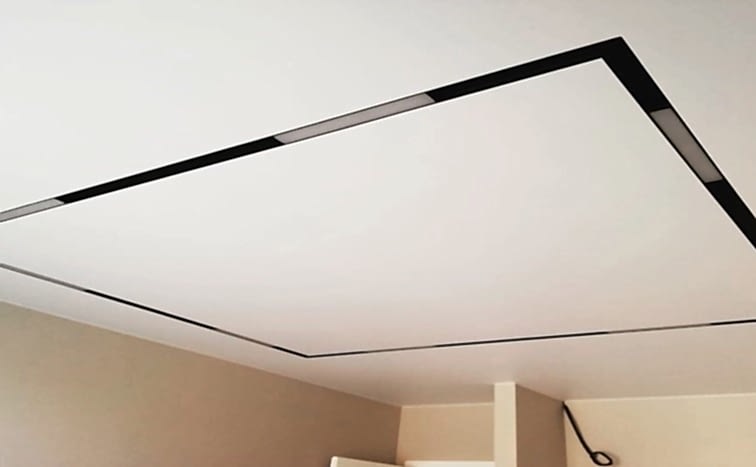 Бесщелевая система Slott предназначена для монтажа в натяжной потолок ПВХ или тканевый в качестве основного освещения (цвета белый и черно-белый) или в качестве Пин Ап в виде черной ниши для размещения дополнительных осветительных приборов и