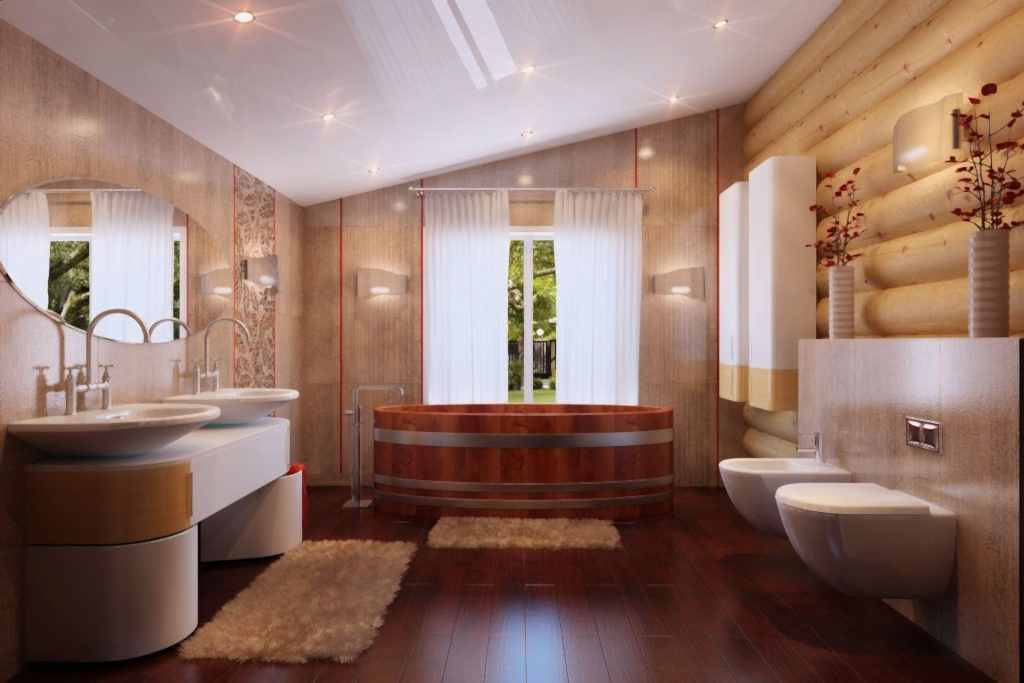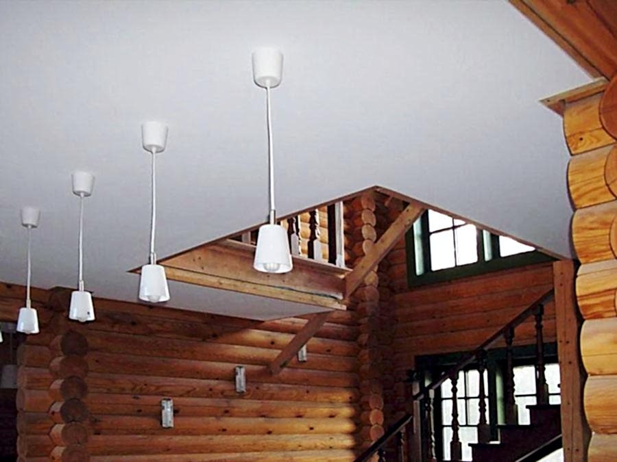 Если стены дома сделаны из оцилиндрованного бревна, то при монтаже натяжных потолков необходимо учитывать дополнительные особенности. Дом из сруба со временем даёт усадку, поэтому сразу после строительства лучше производить установку самой конструкции натяжного потолка с использованием металлический профилей. Они выдержат если дом даст небольшую усадку.