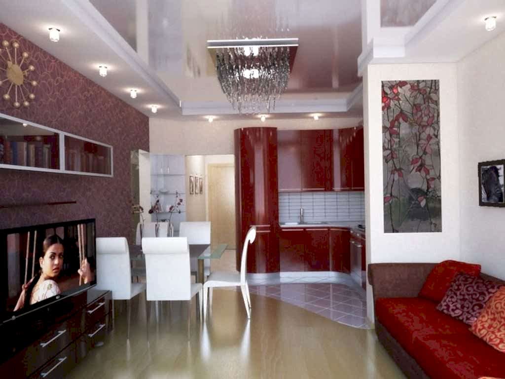 Для однокомнатной квартиры оптимально подойдут следующие виды натяжных Пин Ап