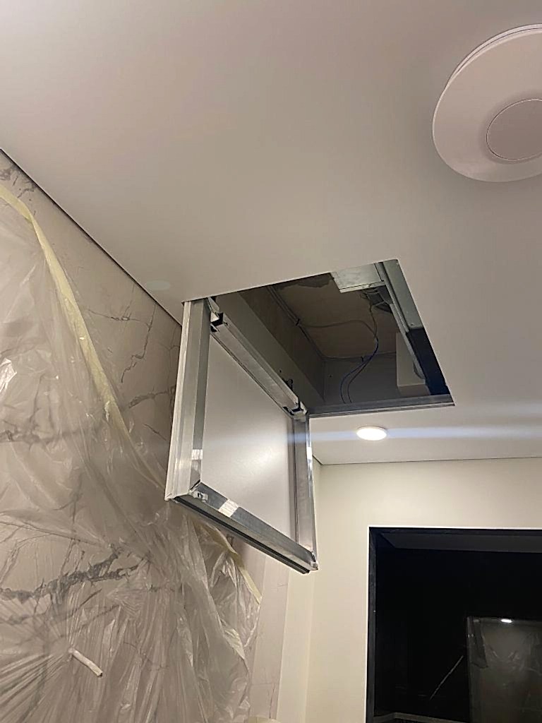 Использовать люк в натяжном потолке можно в жилых помещениях, бассейнах, офисах и Пин Ап саунах. Для этого делают утепленный вариант. Обеспечим удобный доступ для обслуживания коммуникаций.